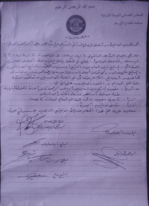 بتاريخ اليوم الأحد الواقع في 06/12/1436 الموافق 20/09/2015 الساعة التاسعة صباحاً اجتمع في محكمة القطاع الأوسط أعضاء المجلس القضائي: الشيخ زين العابدين – الشيخ أبو سليمان طفور – الشيخ أبو راتب – الشيخ علي دندل – الأستاذ أبو عدنان – الأستاذ أبو محمد حمورية، وتداول الحاضرون أوضاع المجلس القضائي في الفترة الحالية وشغور سدّة القاضي العام واتفق الحاضرون على الاتي: