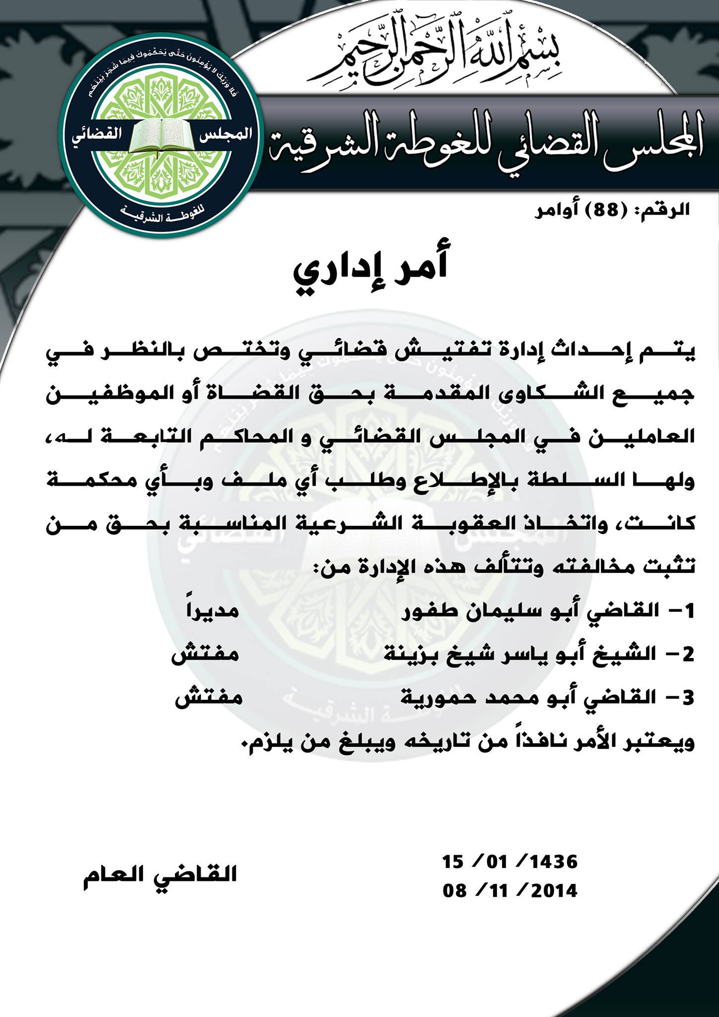 أمر إداري للمجلس القضائي للغوطة الشرقية بإنشاء إدارة تفتيش قضائي