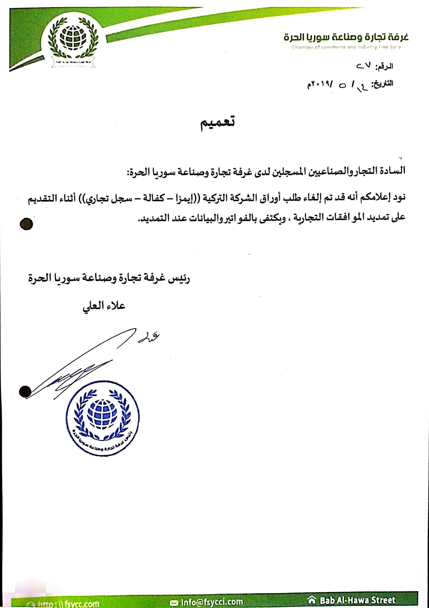 تعميم بإلغاء طلب أوراق الشركة التركية ( ايمزا _ كفالة _ سجل تجاري ) أثناء التقديم على تمديد الموافقات التجارية