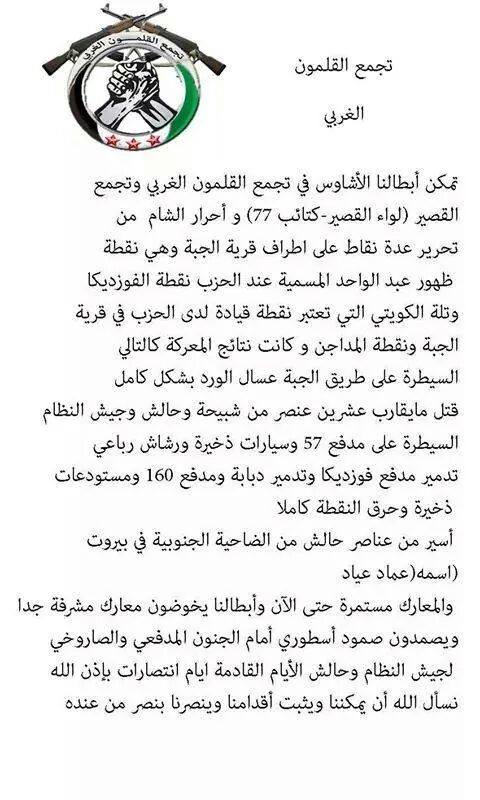 بيان "تجمع القلمون الغربي" حول السيطرة على عدة نقاط في ريف دمشق