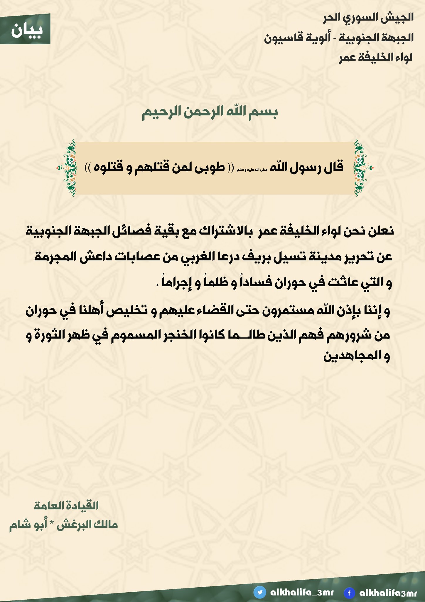 بيان السيطرة على بلدة تسيل من سيطرة داعش