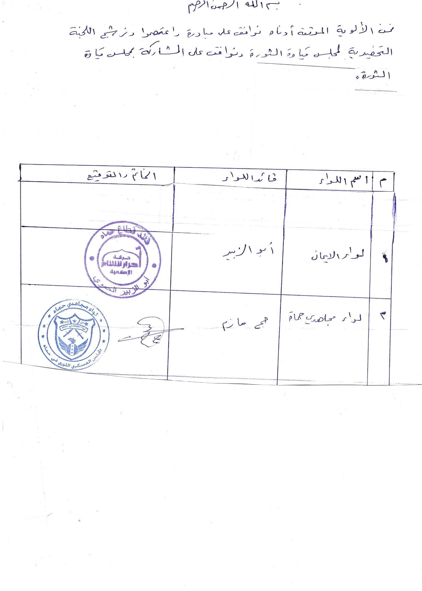 بيان انضمام عدد من فصائل مدينة حماة إلى مبادرة واعتصموا