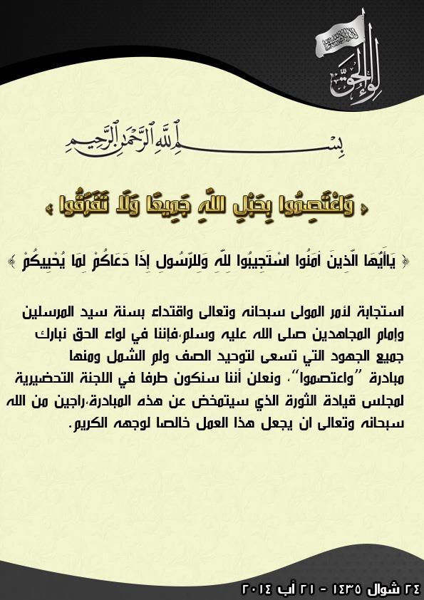 بيان انضمام لواء الحق إلى مبادرة واعتصموا