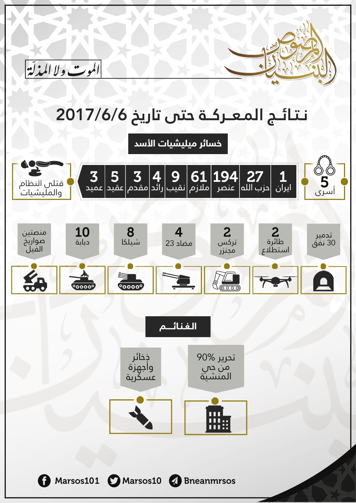 خسائر ميليشيات الأسد والميليشيات الطائفية المساندة له منذ انطلاق معركة الموت ولا المذلةحتى تاريخ 6حزيران 2017