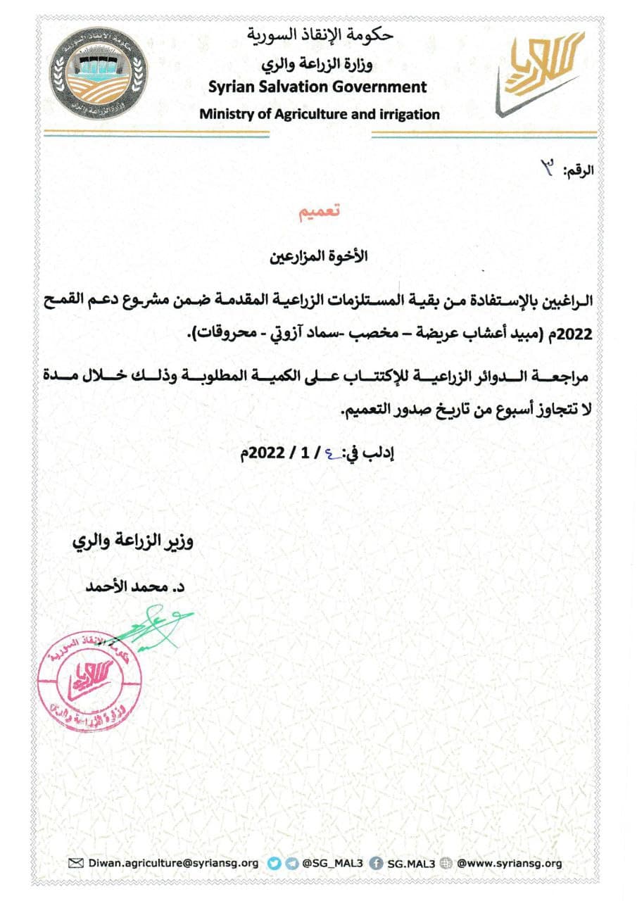 وزارة الزراعة والري - حكومة الإنقاذ السوريةشخصيات مرتبطة