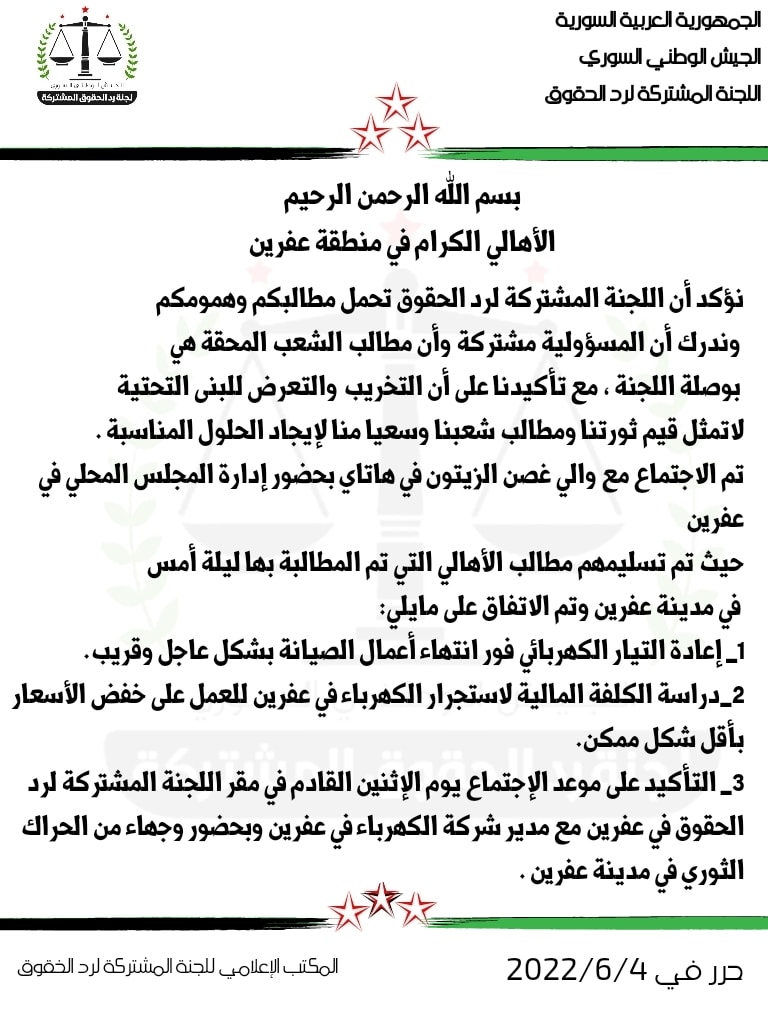 لجنة رد الحقوق المشتركة في عفرينشخصيات مرتبطة