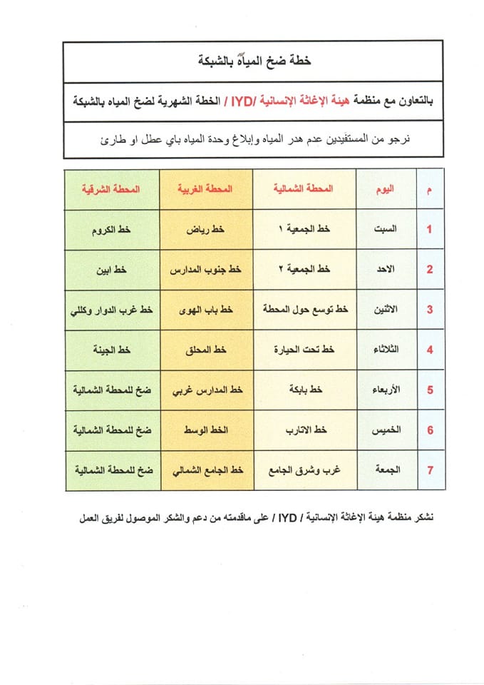 تعميم من المجلس المحلي في بلدة باتبو حول الخطة الشهرية الجديدة لضخ المياه بالشبكة