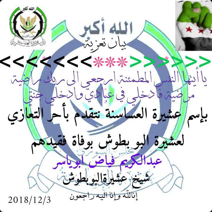 بيان من عشيرة العساسنة يعزي عشيرة البوبطوش بوفاة شيخها عبد الكريم فياض