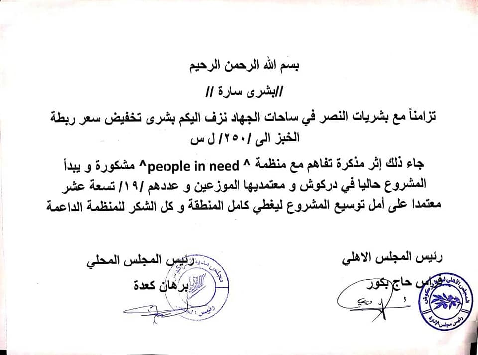 بيان من المجلسين الأهلي والمحلي في دركوش حول تحديد سعر ربطة الخبز ب 250 ليرة سورية
