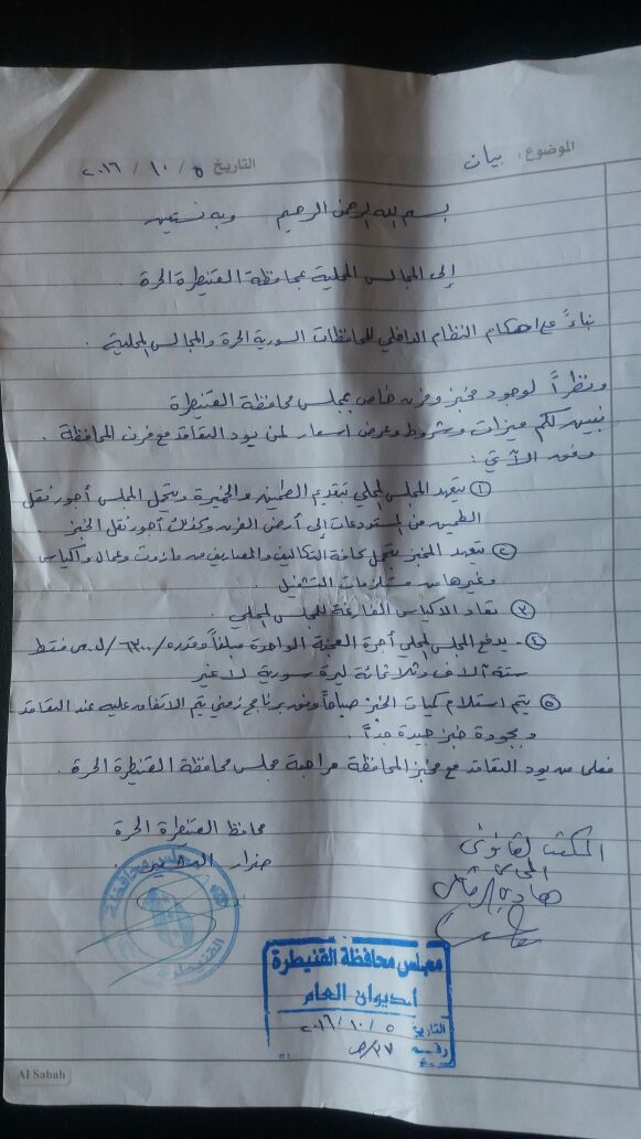 إعلان مجلس محافظة القنيطرة الحرة عن ميزات وشروط التعاقد مع أفران الخبز