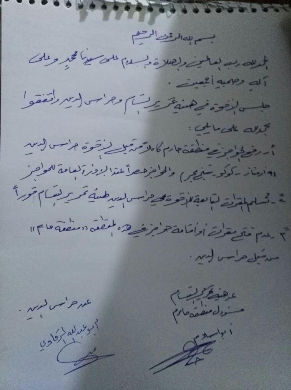 جلس الأخوة في هيئة تحرير الشام وحراس الدين واتفقوا على ما يلي: