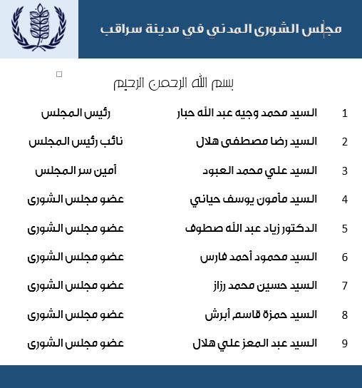 قائمة رسمية بأعضاء مجلس الشورى المدني في سراقب