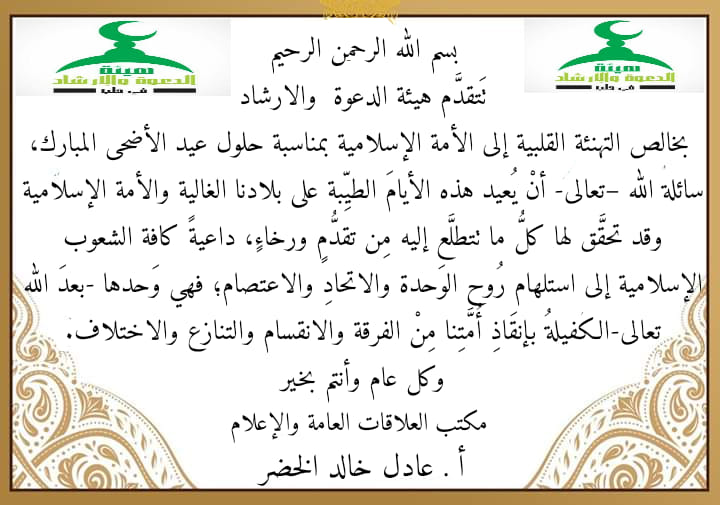 بيان تهنئة من هيئة الدعوة والإرشاد بمناسبة عيد الأضحى
