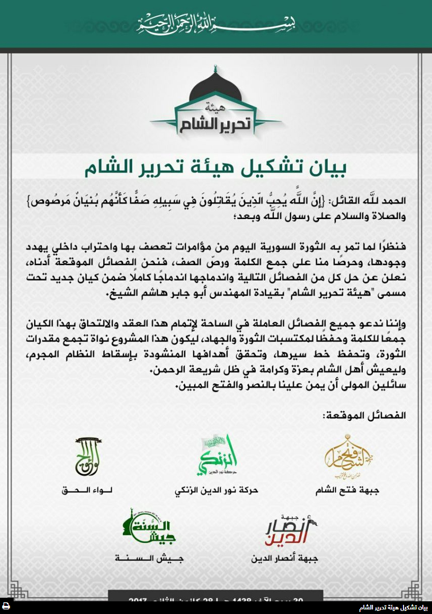 بيان تشكيل هيئة تحرير الشام