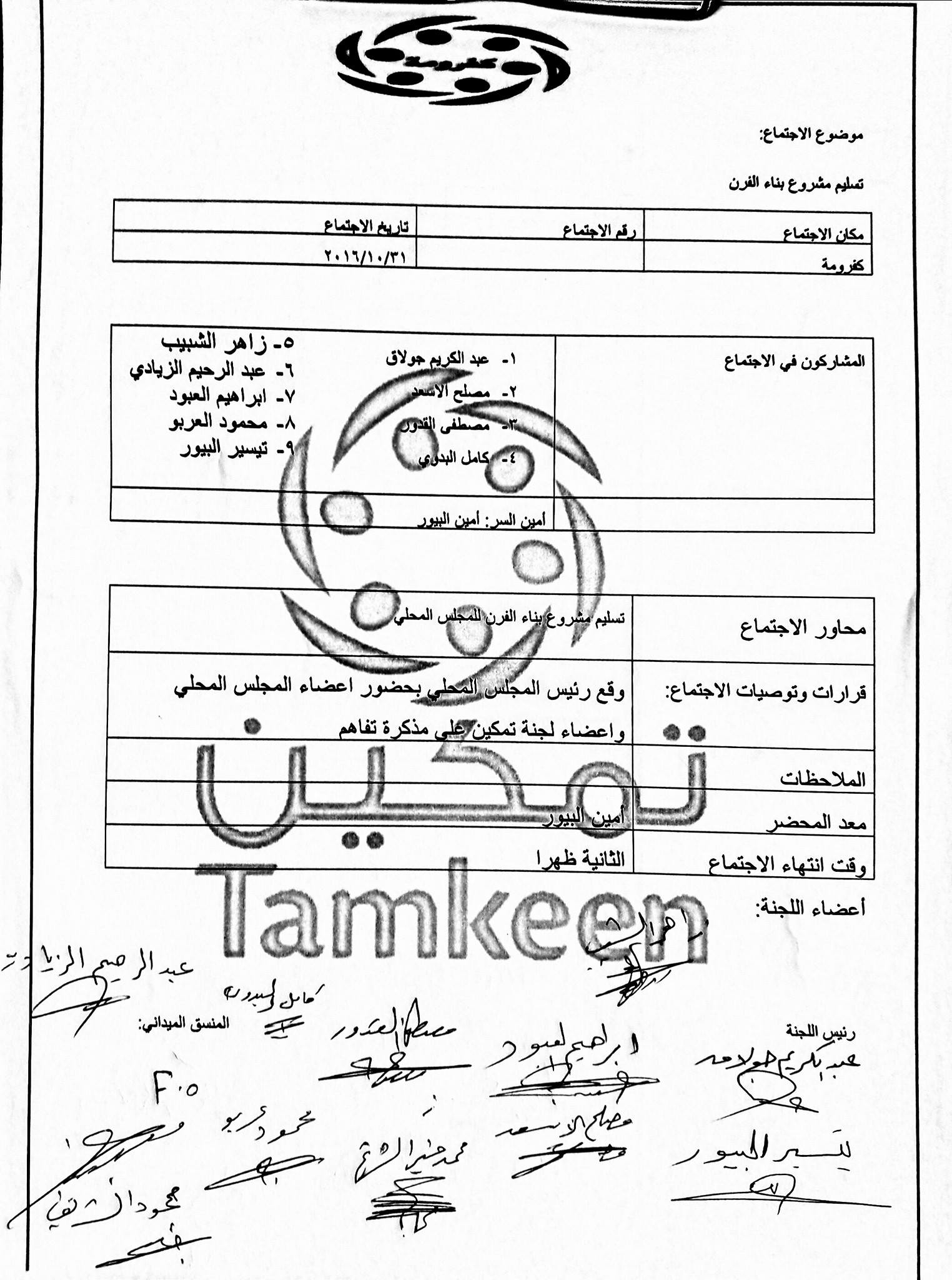 محضر اجتماع لجنة تمكين كفرومة الذي عقد بخصوص موضوع الفرن