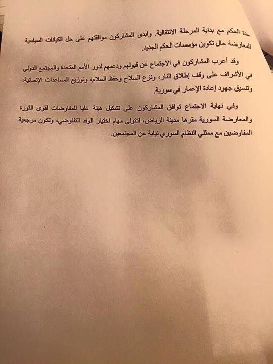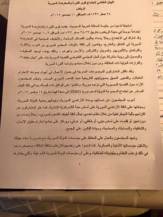 البيان الختامي لاجتماع قوى الثورة والمعارضة السورية في الرياض 2015 - بيان مؤتمر الرياض١