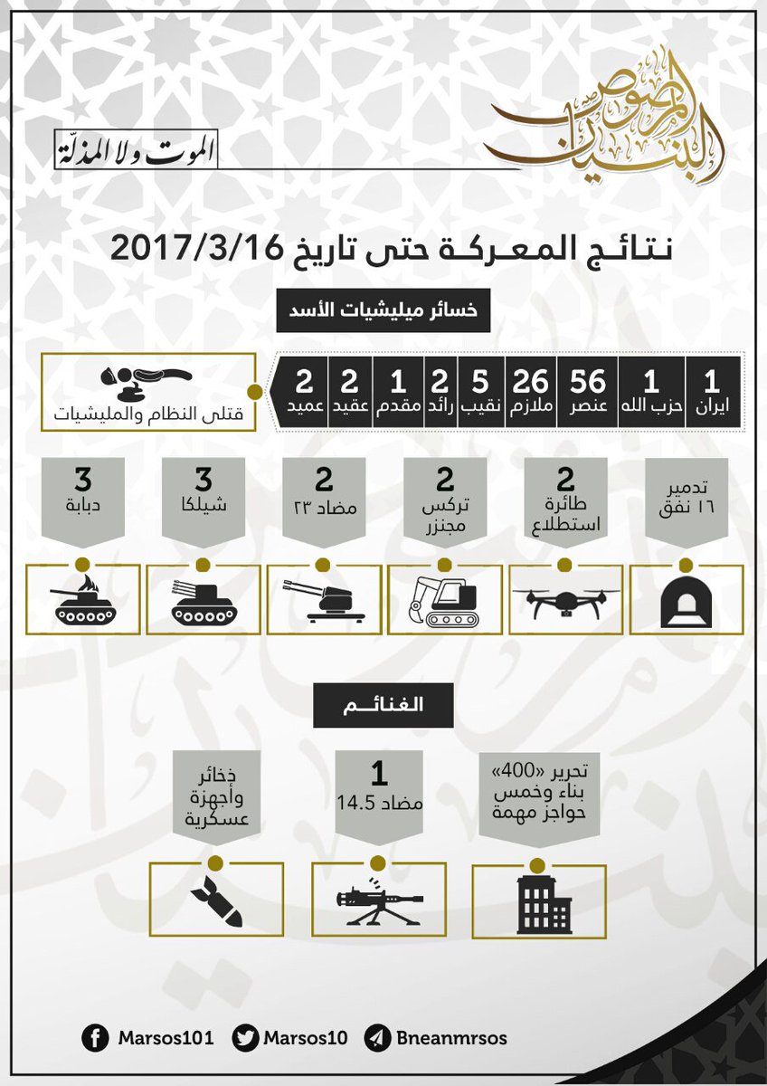 انفوغراف لنتائج معركة البنيان المرصوص حتى تاريخ 2017/3/16