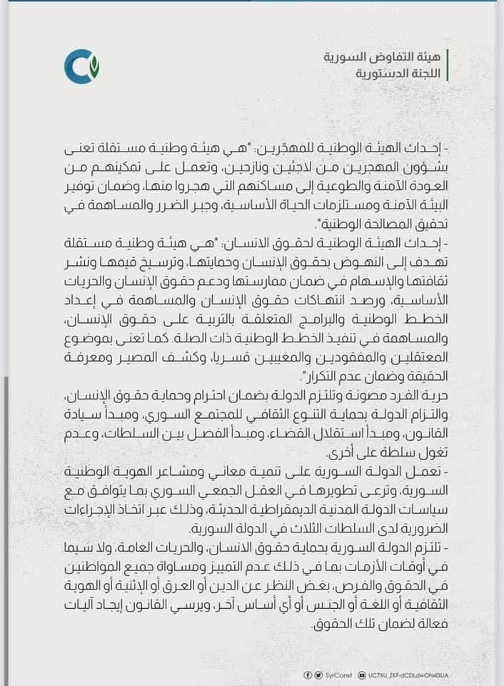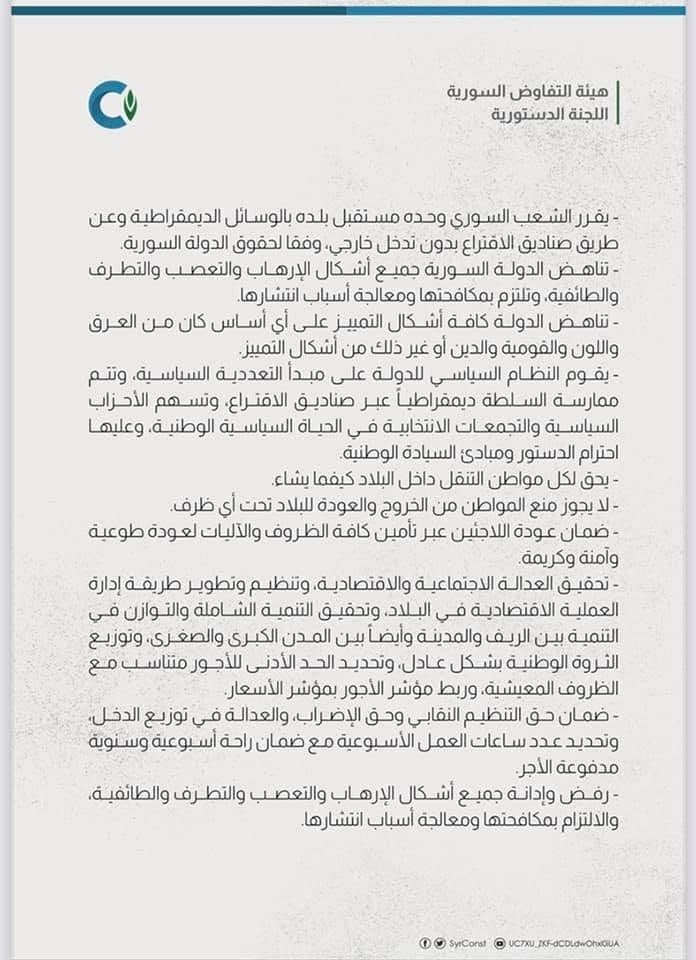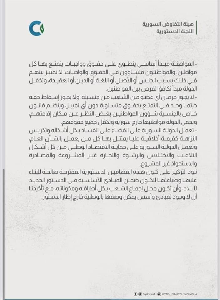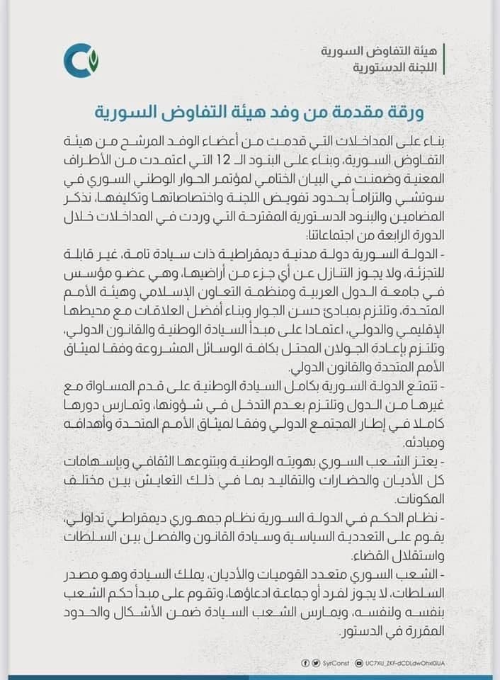ورقة وفد هيئة التفاوض السورية في الجولة الرابعة من اجتماعات اللجنة الدستورية