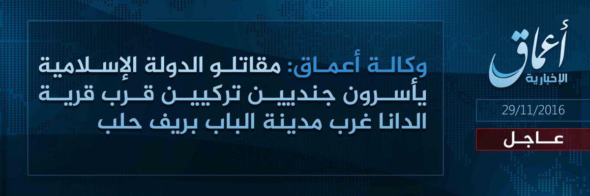 بيان عسكري حول أسر تنظيم "الدولة الإسلامية" لجنديين تركيين قرب قرية الدانا في ريف حلب
