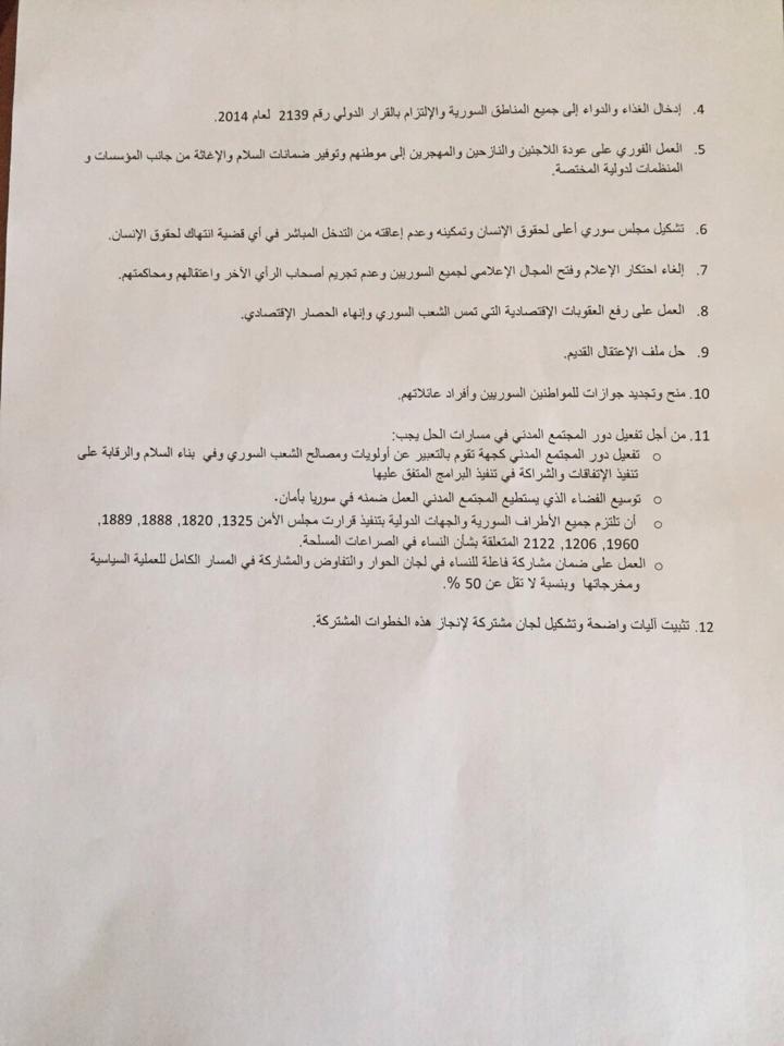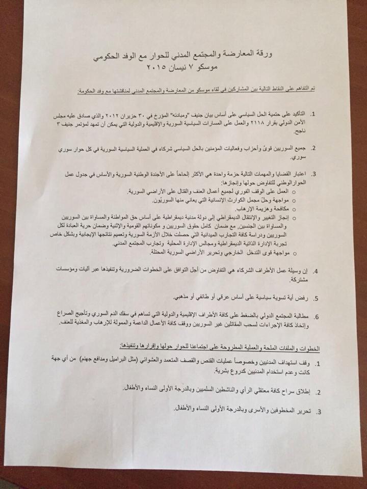 ورقة المعارضة والمجتمع المدني المجتمعة في موسكو للحوار مع وفد النظام