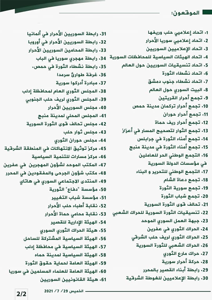 4. اتحاد الهيئات السياسية للمحافظات السورية 34. رابطة مهجري سوريا في الباب