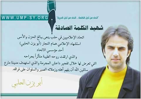بيان تعزية من اتحاد الإعلاميين في حلب بالإعلامي همام النجار (أبو يزن الحلبي)