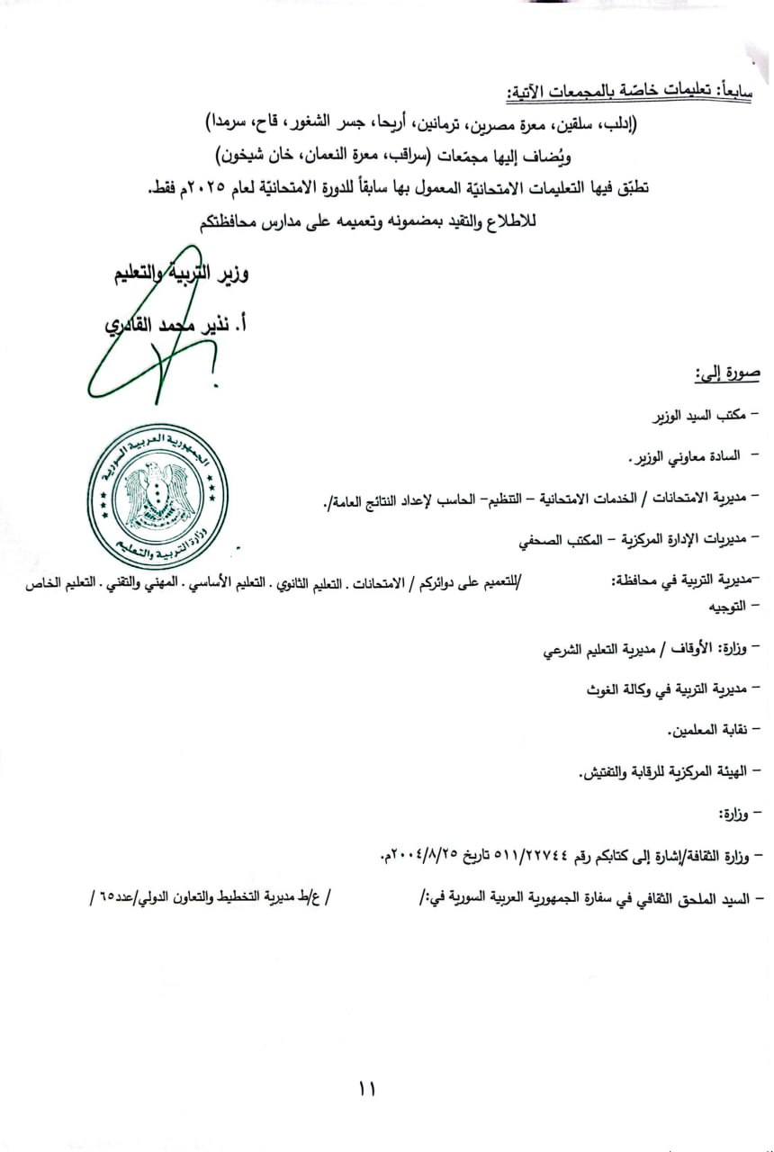 بهدف إنجاز العملية الامتحانية للشهادات كافة بمواعيدها لدورة ٢٠٢٥م رأينا الآتي: