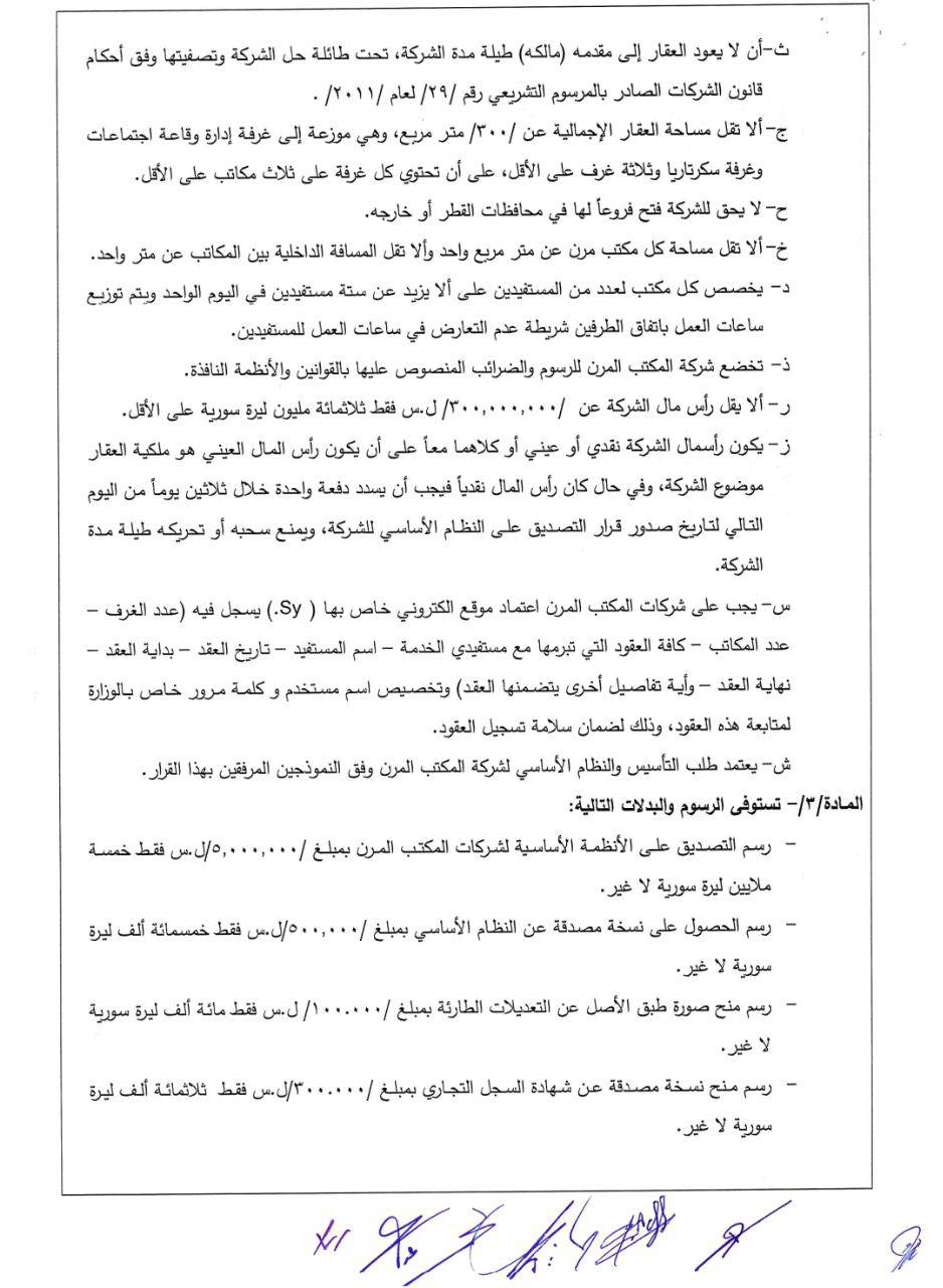شركة المكتب المرن: هي شركة محدودة المسؤولية تتألف من شخصين على الأقل وغايتها تقديم خدمات المكتب المرن وتحدد شروط عملها وتأسيسها وفق أحكام هذا القرار .