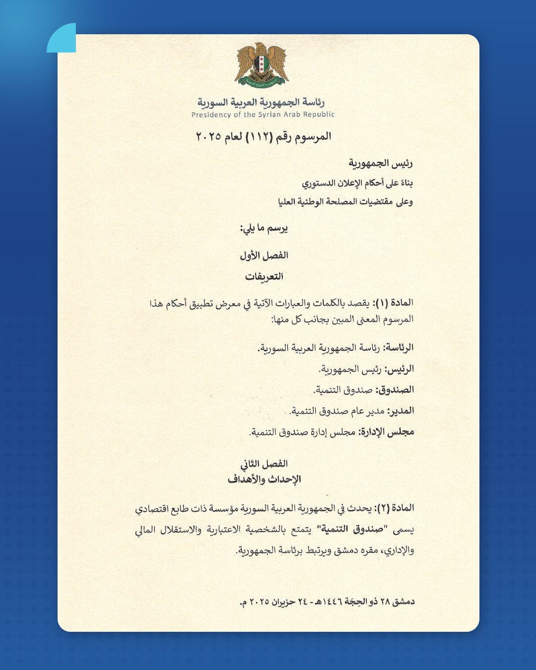 المرسوم 112 لعام 2025: إحداث صندوق التنمية