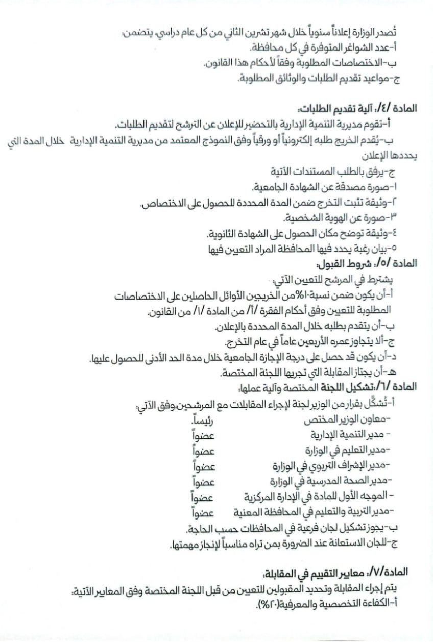 المادة / ١٢/: ينشر هذا القرار في الجريدة الرسمية ويُعد نافذاً من العام الدراسي ٢٠٢٤ - ٢٠٢٥.