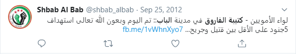 بيان تشكيل كتيبة الفاروق للمهام الخاصة في مدينة الباب في ريف حلب