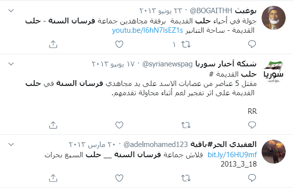 جماعة فرسان السنة مرفق.bmpathrpress.com-فصائل المعارضة تندمج وتتغير في الشمال السوريجماعة فرسان السنة مرفق 2.bmpalquds.co.uk-شبح الأستانة يخيم على أجواء هيئة تحرير الشام وتوقعات بتفكك بعض فصائل المعارضة السورية المسلحةar.wikipedia.org-قائمة الفصائل المندمجة في هيئة تحرير الشامكود الذاكرة السورية