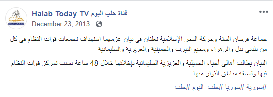 بيان جماعة فرسان السنة حول السيطرة على طريق شيحان في محافظة حلب