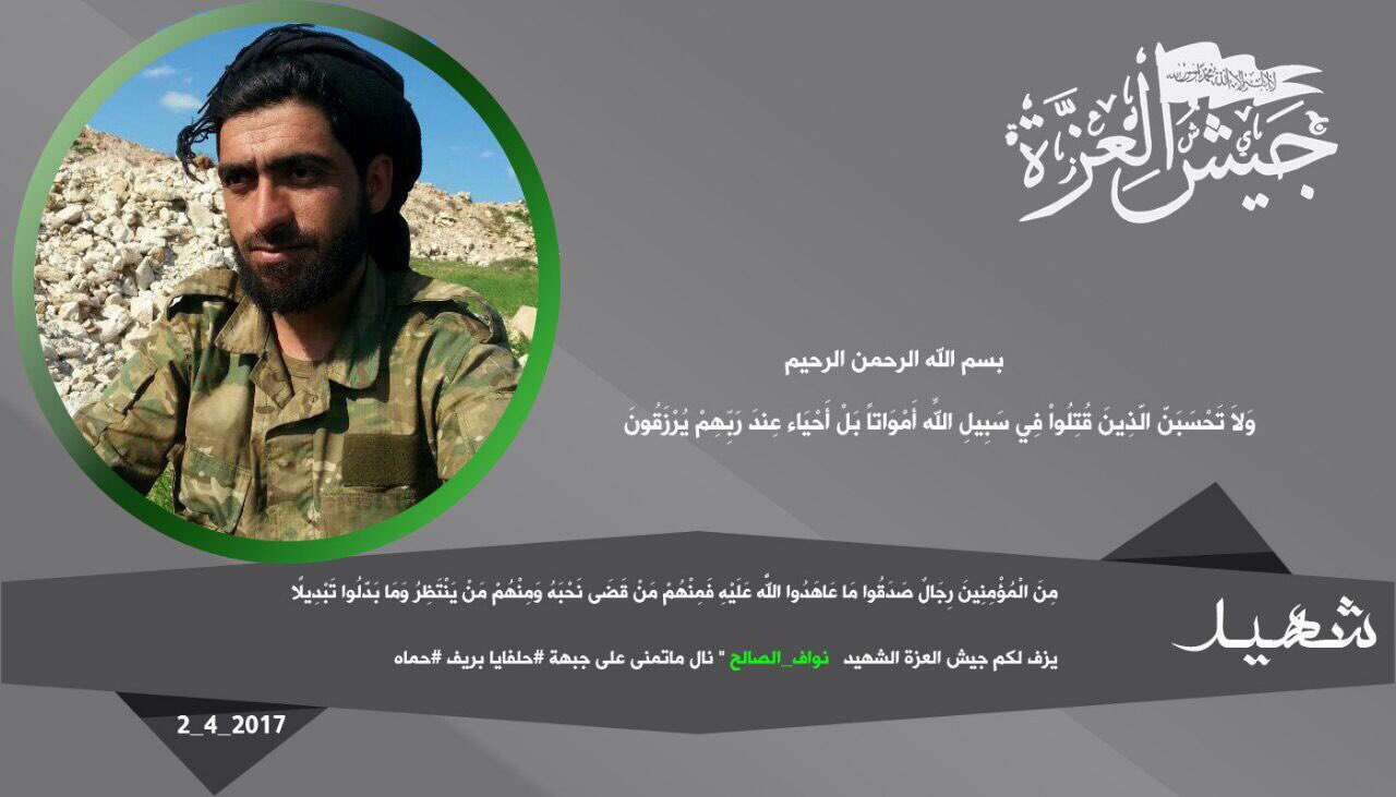 قتل نواف الصالح في 2 نيسان/ إبريل 2017 خلال اشتباكات في محيط مدينة حلفايا في ريف حماة الشمالي، وقد أعلنت حركة النجباء مسؤوليتها عن ذلك.