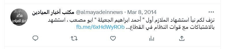 قتل في اشتباكات مع قوات النظام في محيط مطار دير الزور العسكري في جبل ثردة في 8 آذار/ مارس 2014، ودفن في قرية محكان في ريف الميادين.