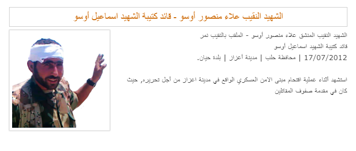 الشهيد النقيب علاء منصور أوسو النقيب نمر قائد كتيبة الشهيد اسماعيل أوسو
