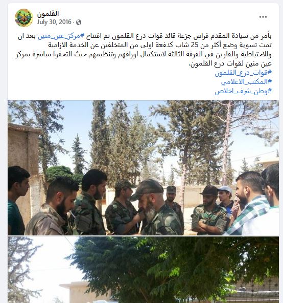 تم تعيينه قائداً لقوات درع القلمون بعد تشكيلها مطلع عام 2014، والتي ضمت عناصر الدفاع الوطني في مناطق النبك ويبرود والهامة ورنكوس والقطيفة وغيرها، وباتت تحظى بدعم ورعاية من الفرقة الثانية والحرس الجمهوري والمخابرات العسكرية.
