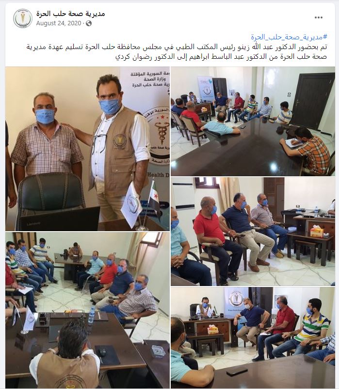 تعميم من مديرية صحة حلب الحرة إلى كافة الهيئات الطبية في محافظة حلب الحرة بشأن مباشرة الدكتور عبدالباسط إبراهيم لمهامه كمدير لصحة حلب