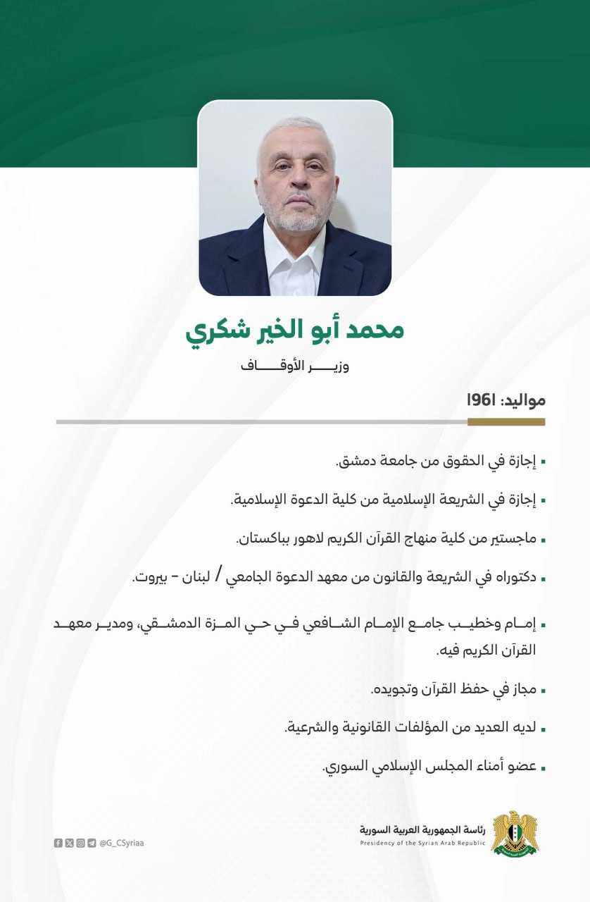 حكومة الجمهورية العربية السورية برئاسة الرئيس أحمد الشرع