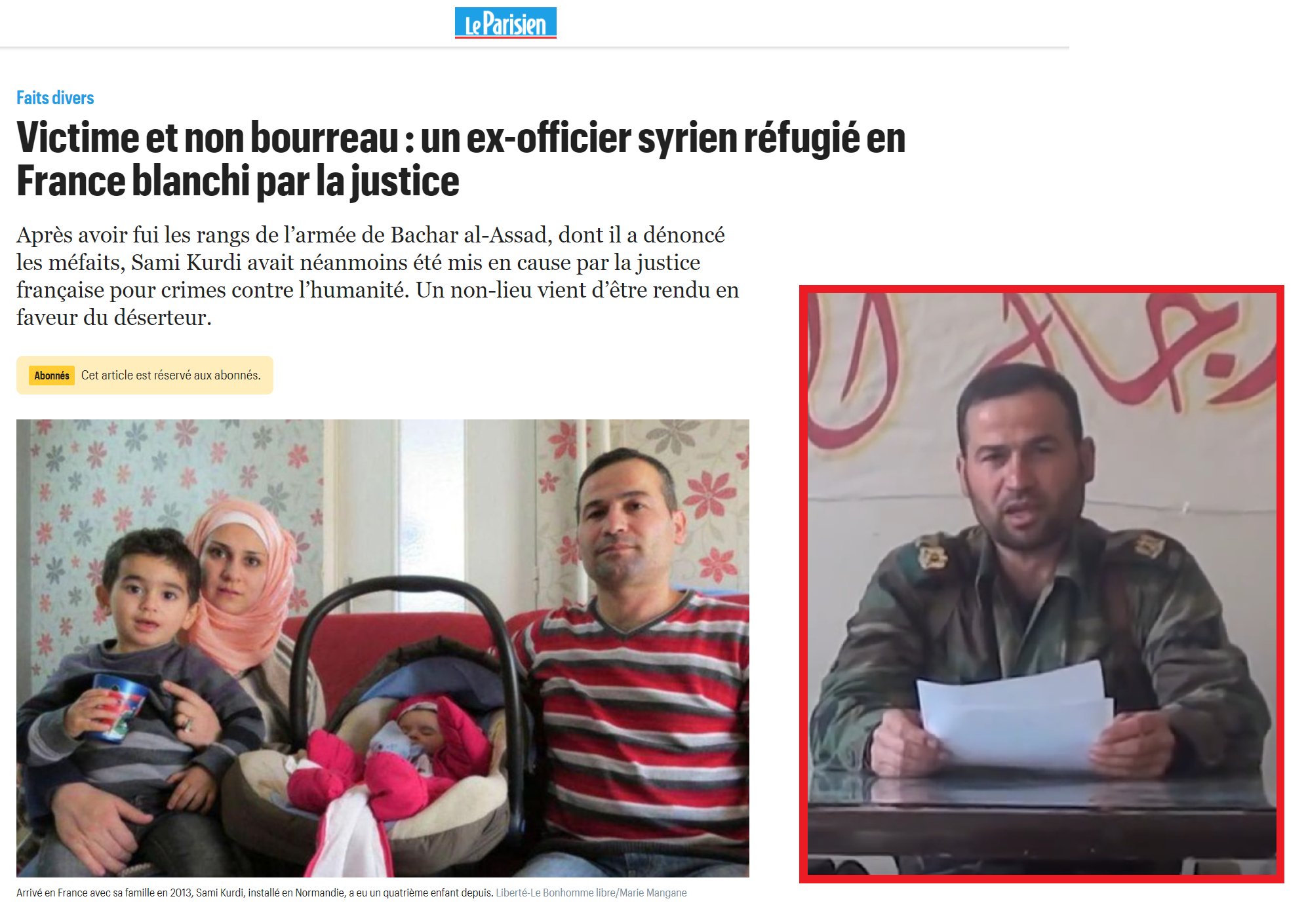 بعد عام من انشقاقه، لجئ الكردي وعائلته إلى فرنسا، حيث واجه هنالك اتهامات بضلوعه أو مشاركته في جرائم ضد الإنسانية أو جرائم حرب وتعذيب قبل انشقاقه. وقد تم استدعاؤه من قبل المحكمة في19 حزيران/ يونيو 2018 لكنه خرج من المحكمة بصفته شاهداً لا متهماً، قبل أن يتم إسقاط الدعوى ضده في كانون الثاني/ يناير 2021 لعدم تقدم أي من الضحايا بالشهادة ضده.