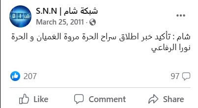 تم اعتقالها مع صديقتها مروة الغميان أثناء مشاركتهما في مظاهرة سوق الحريقة في مدينة دمشق في 15 مارس/ آذار 2011، قبل أن يتم إطلاق سراحمها في 25 آذار/ مارس 2011.