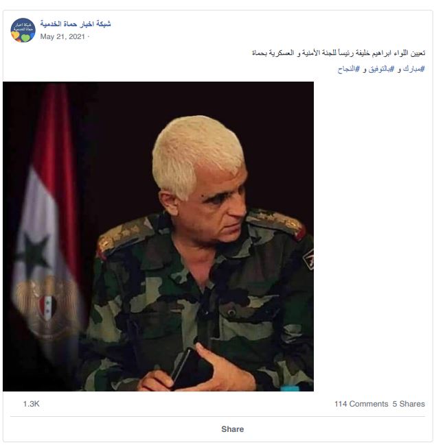 رئيس اللجنة الأمنية والعسكرية في حماة، وقائد الفرقة الأولى دبابات.