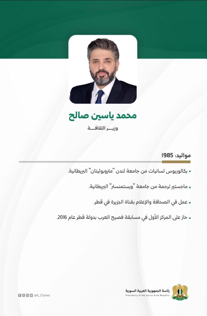 وزير الثقافة في الحكومة السورية الأولى برئاسة الرئيس أحمد الشرع منذ 29 آذار/ مارس 2025.