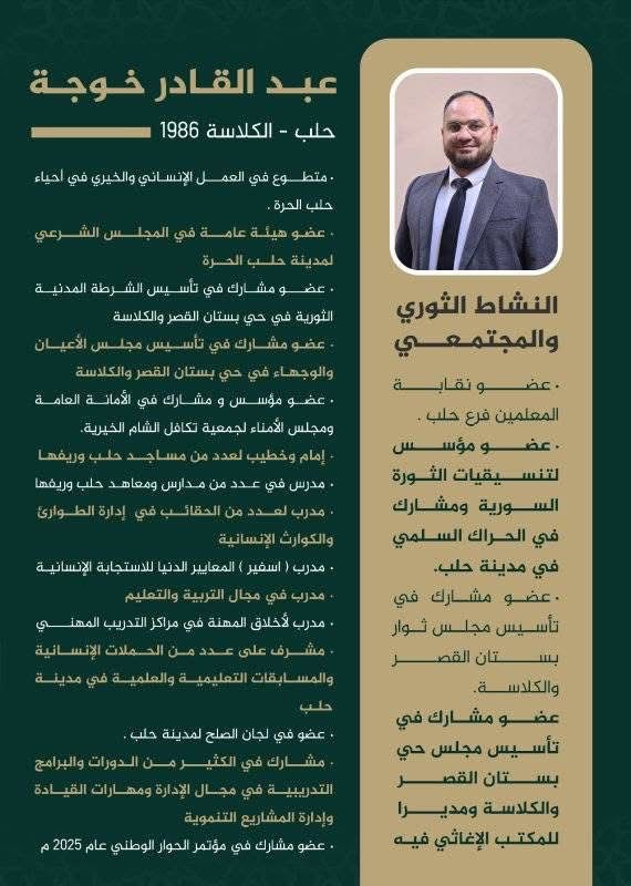 شارك في مؤتمر الحوار الوطني السوري عام 2025.