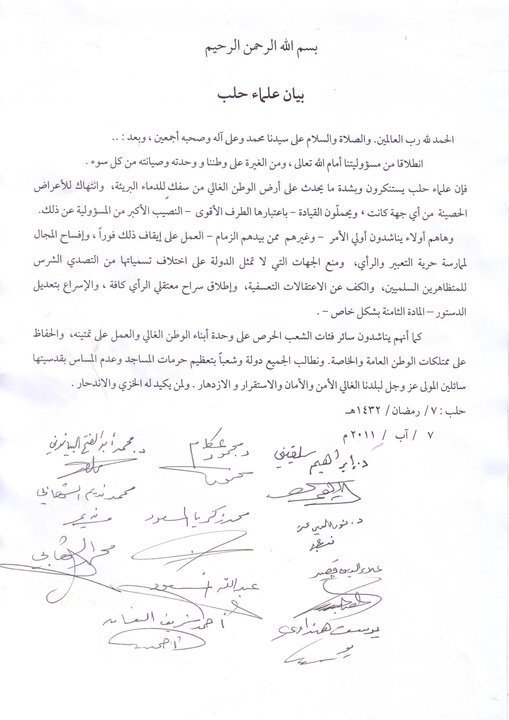 شارك الآلاف من أهالي مدينة حلب في تشييع مفتي حلب الشيخ إبراهيم سلقيني من الجامع الأموي الكبير، وتحول التشييع إلى مظاهرة هتف خلالها المشيّعون "الشعب يريد إسقاط النظام" و"الله أكبر عالظالم" و"الموت ولا المذلة ".