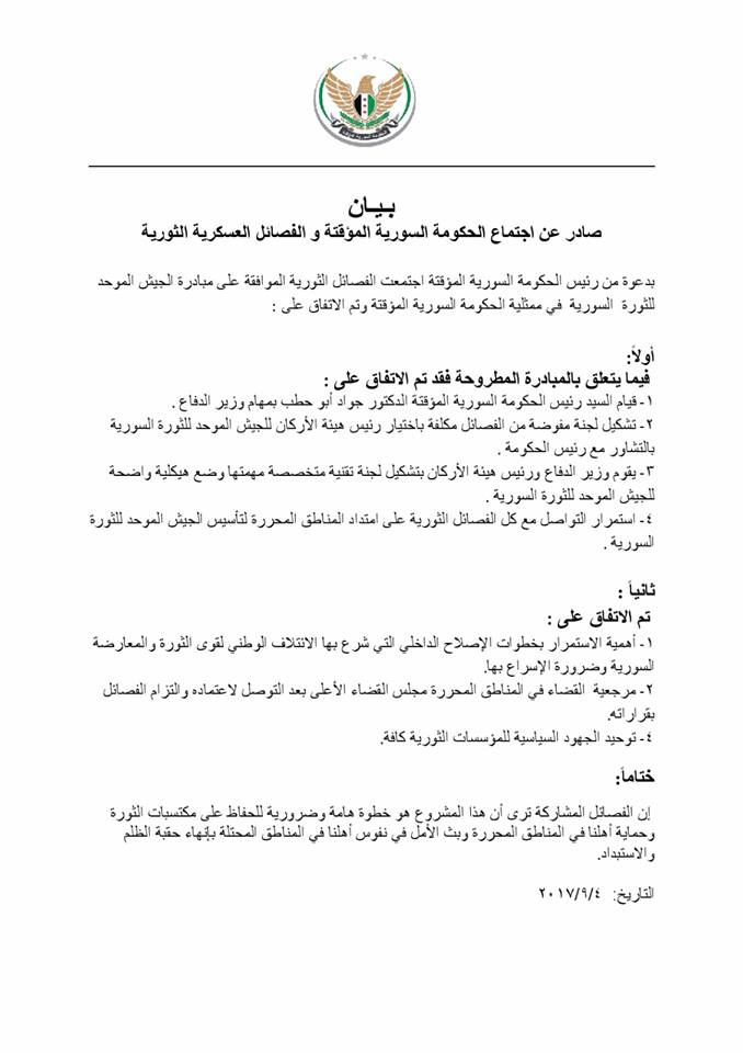 نتائج وتفاصيل اجتماع الحكومة السورية المؤقتة و الفصائل العسكرية الثورية
