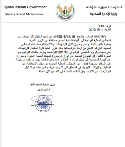 تعميم تمديد استقبال طلبات الترشح للهيئة الناخبة لمجلس محافظة دير الزور