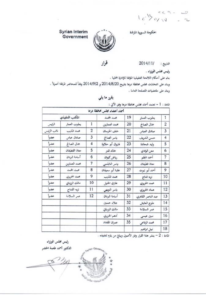 قرار باعتماد لائحة أسماء مجلس محافظة درعا