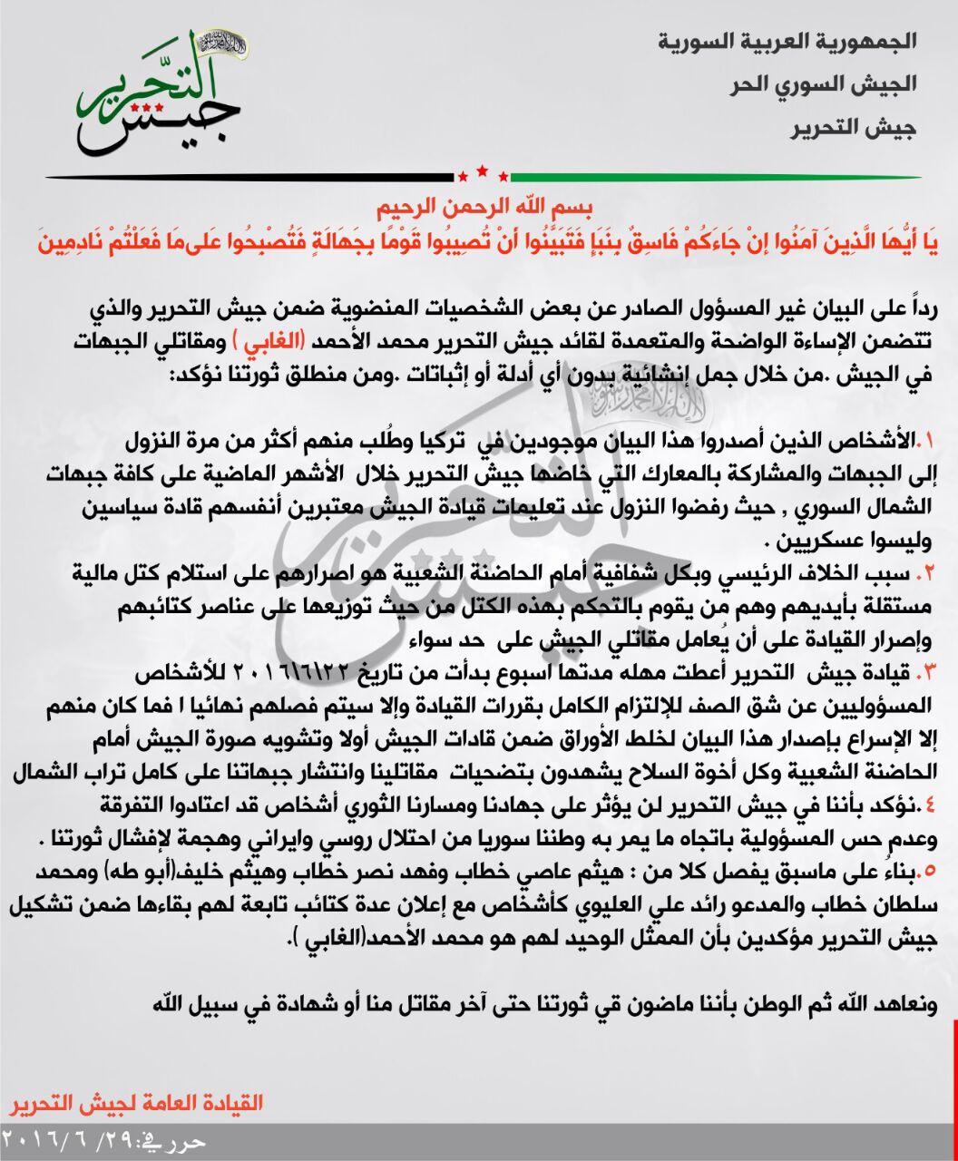 بيان للرد على بيان أسيء فيه لقائد جيش التحرير محمد أحمد الغابي