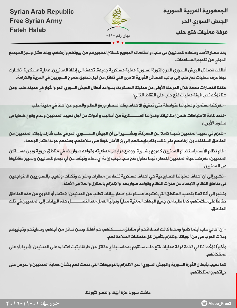 إعلان غرفة عمليات فتح حلب إطلاق عملية عسكرية تهدف إلى إنقاذ المدنيين